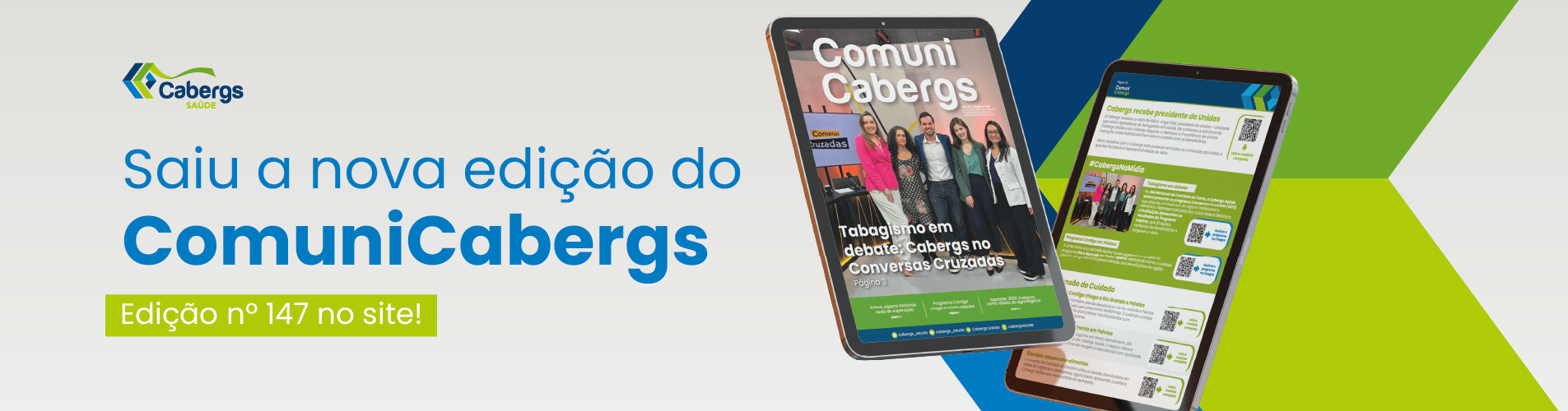 A nova edição do Comunica Cabergs, número 147, já está disponível e traz as principais ações recentes da Cabergs Saúde e da Cabergs Seguros. O informativo reúne pautas sobre inovação, cuidado com os beneficiários, prevenção em saúde e iniciativas que aproximam ainda mais a instituição do seu público.Um dos temas em evidência é a participação da Cabergs Saúde no programa Conversas Cruzadas, da GZH, no Dia Nacional de Combate ao Fumo. Representada pela Dra. Lúcia Helena Brentano, a instituição apresentou os resultados do Programa Inspirar, que já ajudou centenas de beneficiários a parar de fumar...